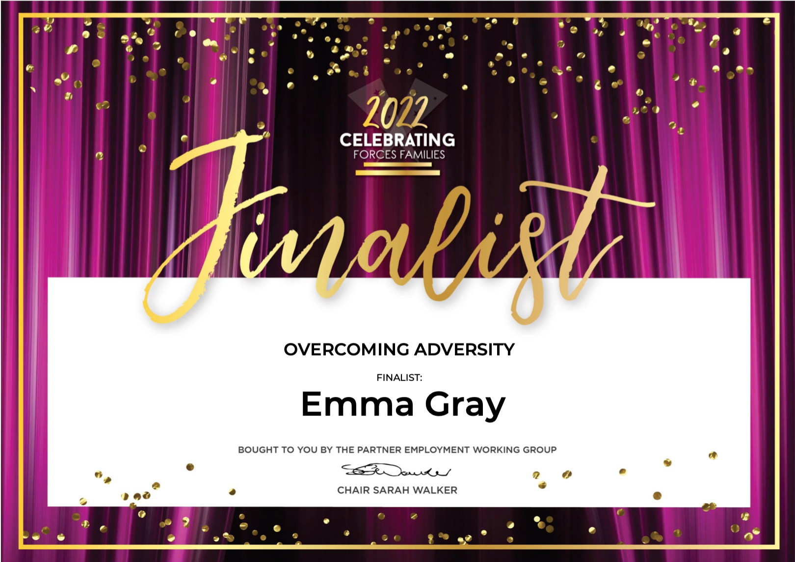 I learnt from my experience as a military wife and now a widow and mother of two bereaved children that forces families face many mental, emotional, social and physical challenges that are unique to all of us. I am hugely grateful for the nomination and I have a mixture of anxiety and excitement about heading to the Big Smoke for a night in a posh frock! The winners will be announced at the CFF Awards Evening on 29th April 2022 in London and you can read more about the event here.